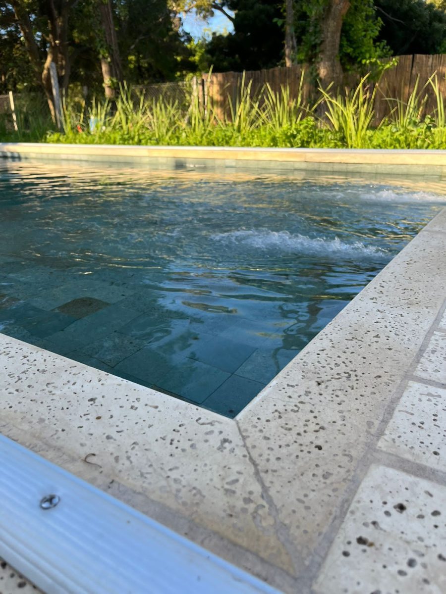 Ofrecemos una variedad de opciones para revestir tu piscina: Venecita Premium en múltiples colores, Marmolite y placas de Travertino, ideales para lograr un acabado único y duradero.